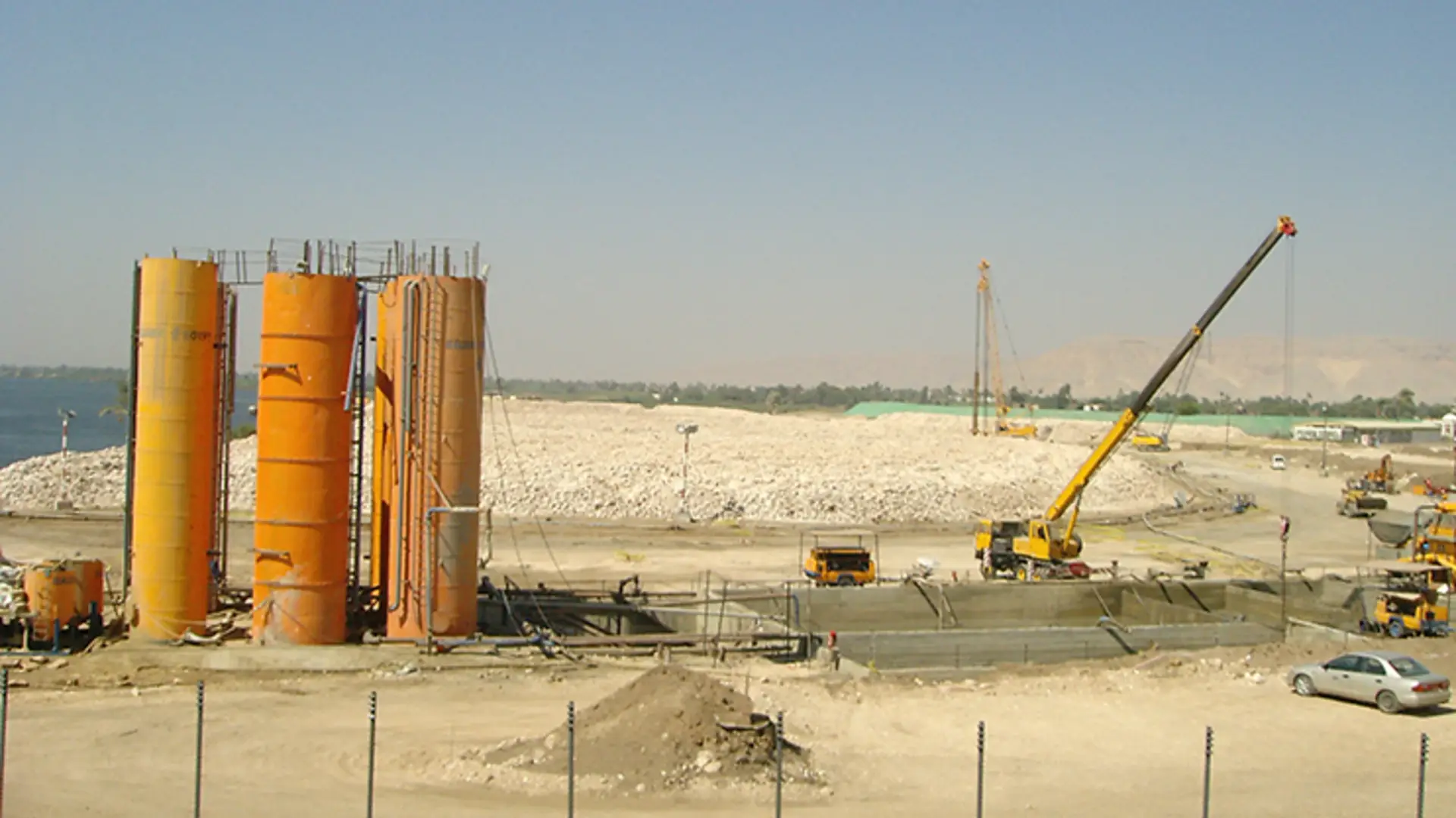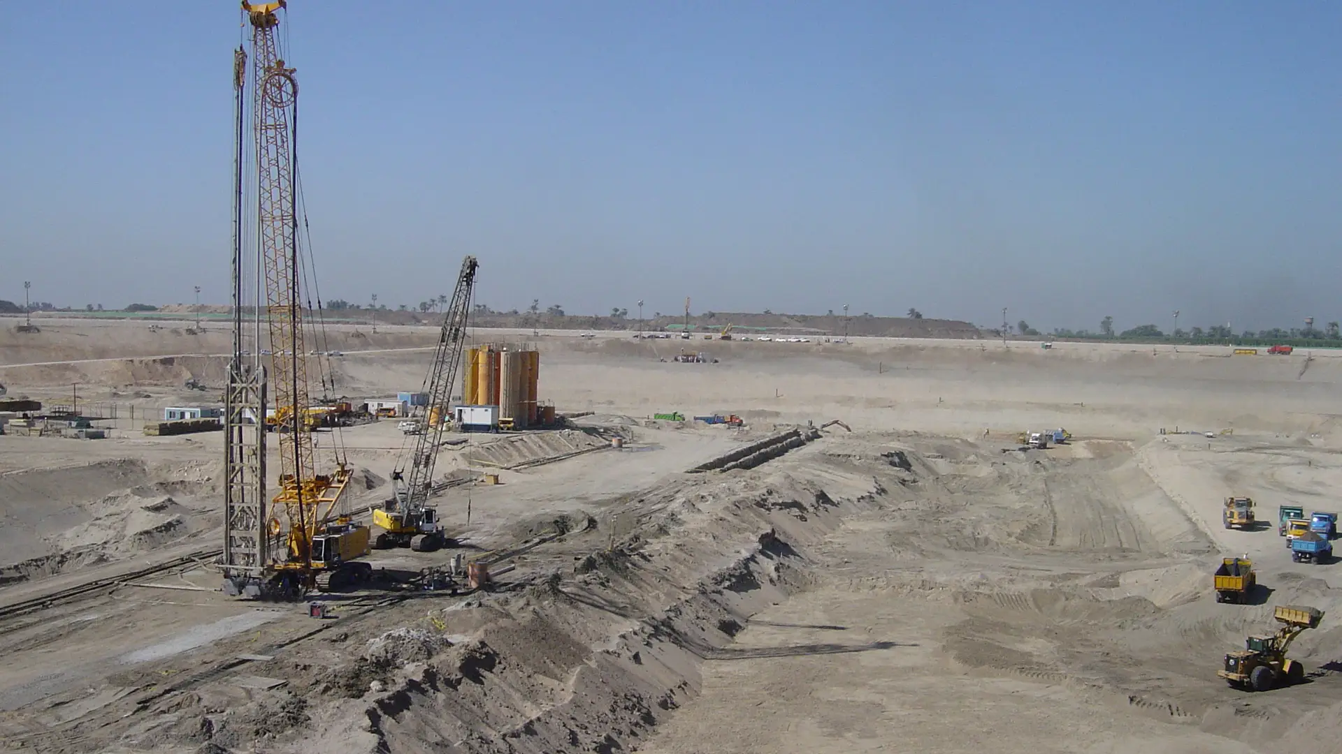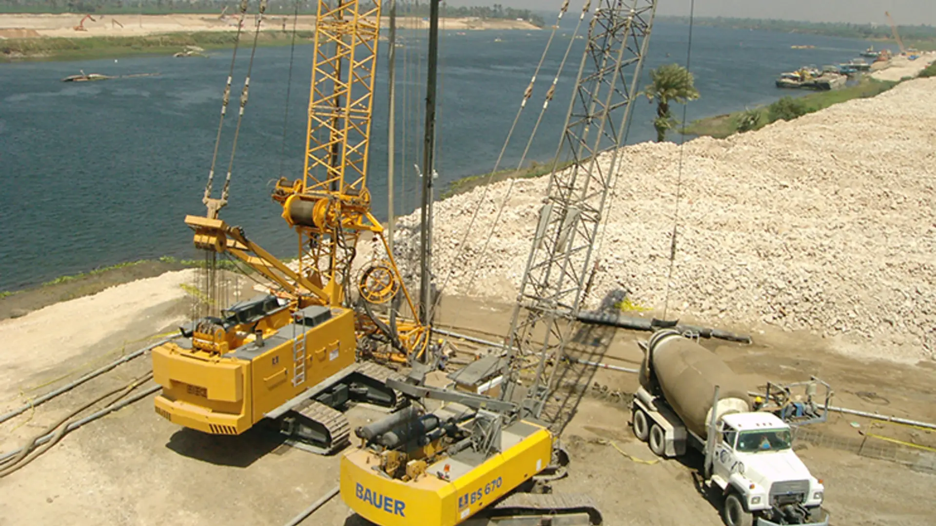 Bauer Egypt was commissioned for the construction of the new Naga Hammadi Barrage in Upper Egypt. The new barrage replaces a structure built in the early 1900s. The new barrage replaces of a structure built in the early 1900s. The new Naga Hammadi Barrage is of crucial importance to the development of the Nile Valley water supply infrastructure. Our expert’s work involved constructing a temporary diaphragm wall, extensive dewatering works and a permanent cut-off wall. It also included 93,000 m² of diaphragm walls, each 60 m deep and 1,000 mm thick, as well as 20,000 m² of 54-meter-deep cut-off walls of the same thickness. Additionally, our specialists were responsible for installing 50 dewatering wells to support the project.