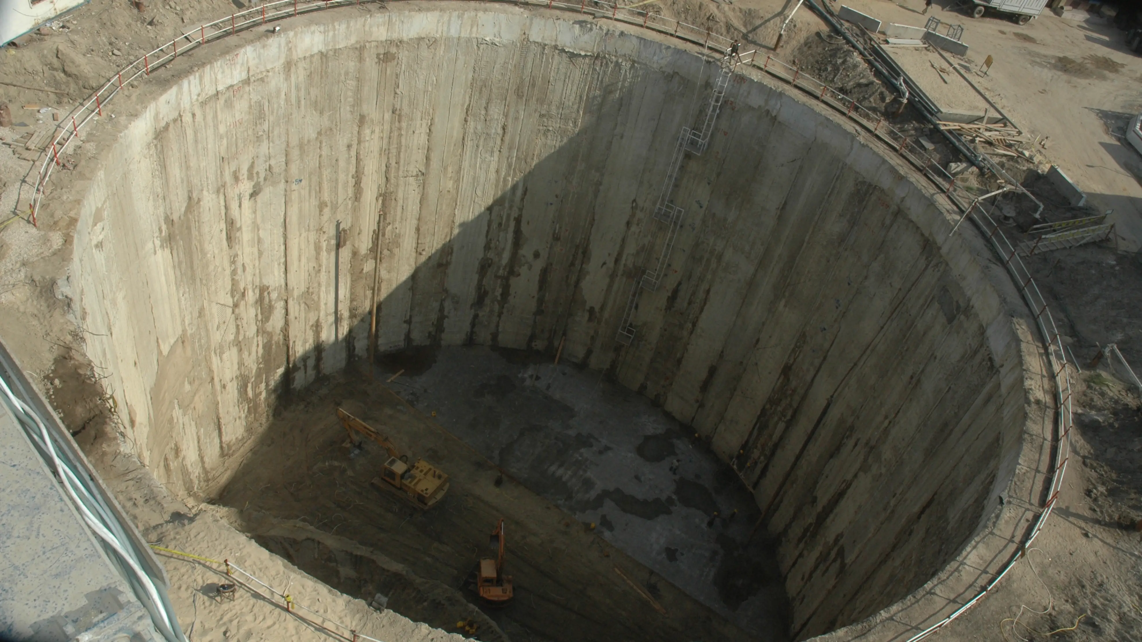 Bauer Egypt was responsible for constructing a diaphragm wall system to support the Amiria Shaft project. This included the execution of diaphragm walls with a shaft diameter of 50 m, a thickness of 1,200 mm and a depth of 60 m, totaling 8,300 m² of diaphragm walls. In addition, Bauer Egypt supplied and constructed a 10 –m thick horizontal grout blanket to control groundwater infiltration within the shaft. Excavation reached 32 m below the groundwater level, ensuring stability and structural integrity during construction.
